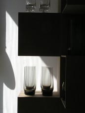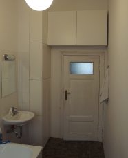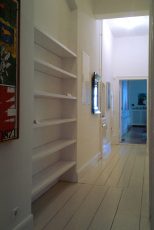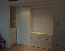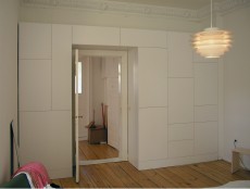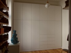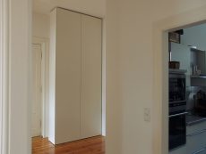 Die schmale Seitenansicht entsteht durch Ausnutzung einer Wandnische, der Schrank hat eine nutzbare Tiefe von 60 cm.