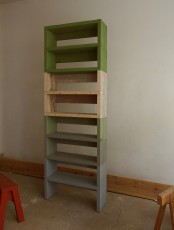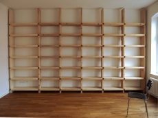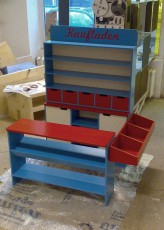 Leimholz Fichte, gebeizt, geölt, teilweise lackiert.