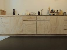 Fronten Sperrholz „Seekiefer“, weiß geölt.