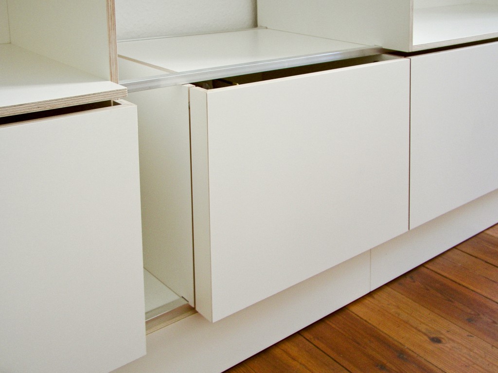 Fronten Tischlerplatte Birke, weiß lackiert.